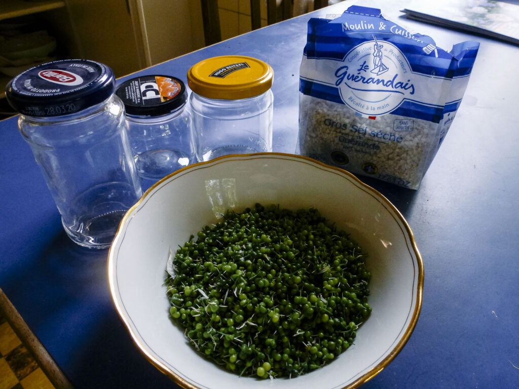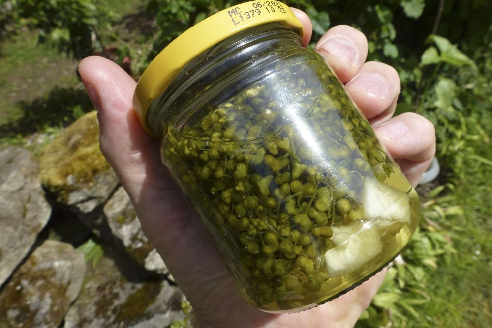 Bärlauchsamen mit Zitronenzisten in Salzlake