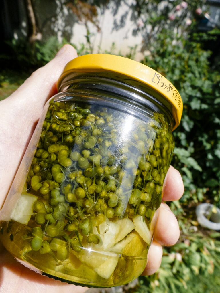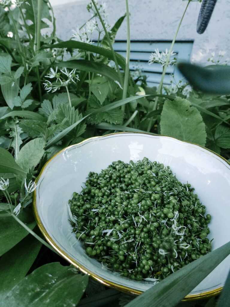 Bärlauchsamen mit Zitronenzisten in Salzlake