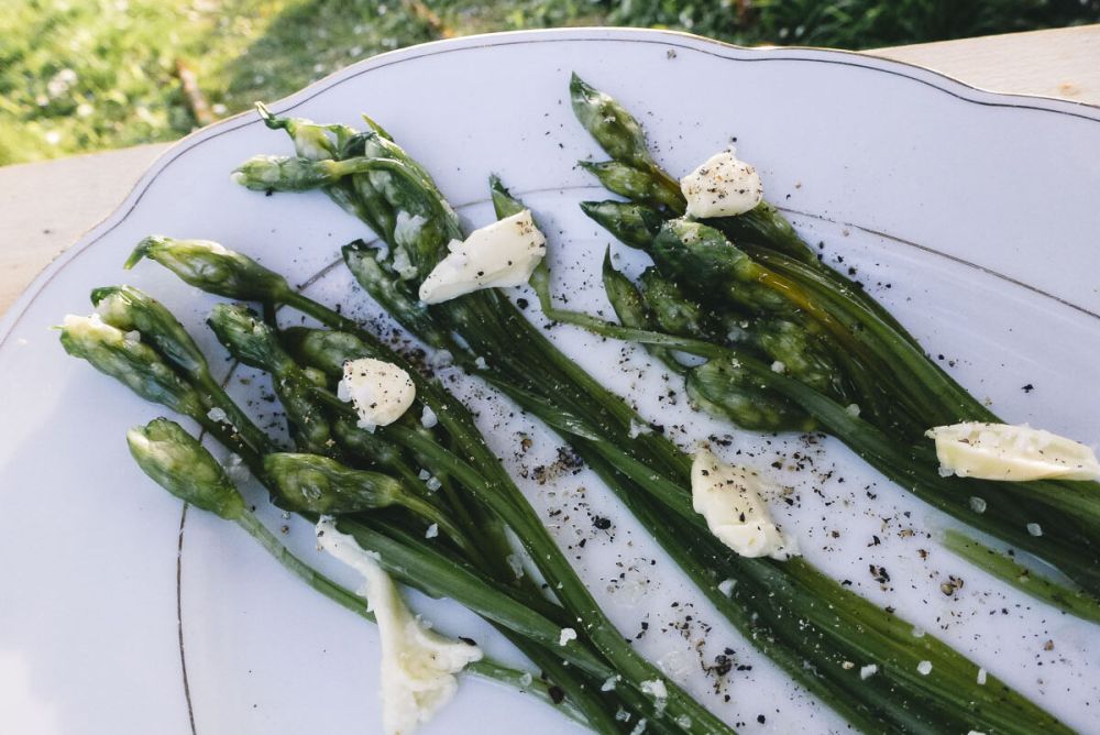 Kommen wir mit dem Essen von Bärlauchspargeln und dem Sammeln von Blumensträussen nicht nach (wie das in unserem Garten der Fall ist), bietet sich die Samenverwertung an. Doch dazu im nächsten Bericht. Zunächst aber das Spargelrezept:
