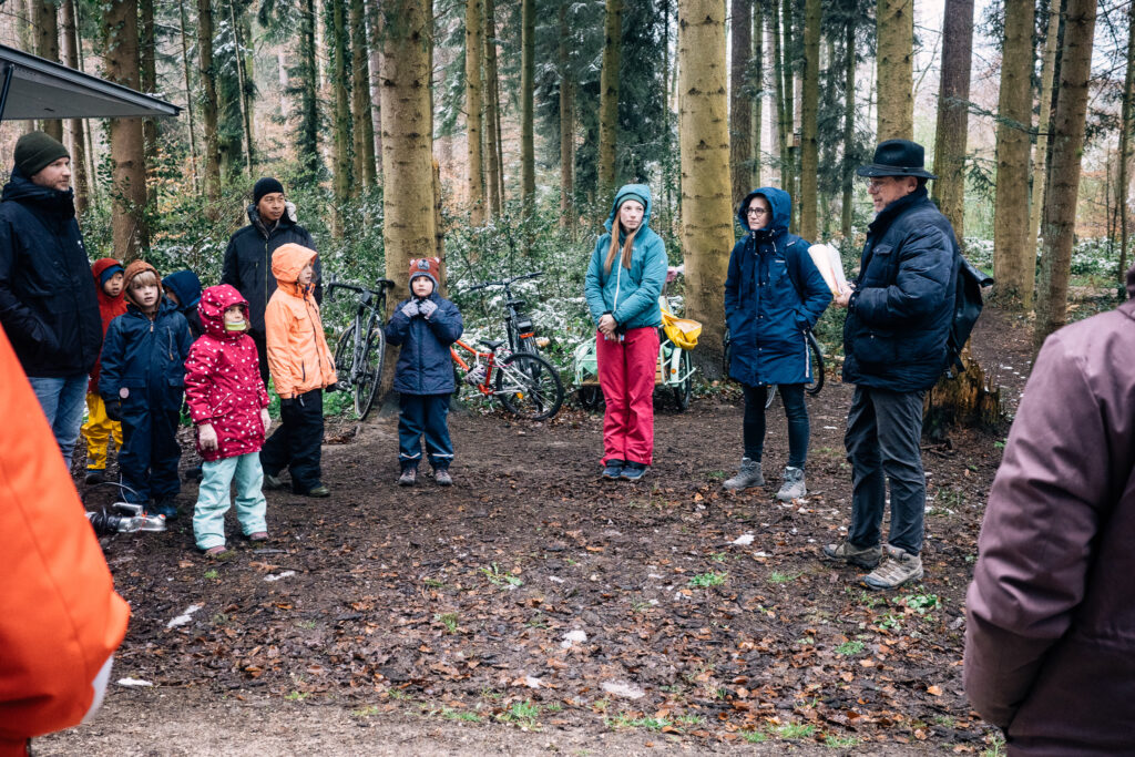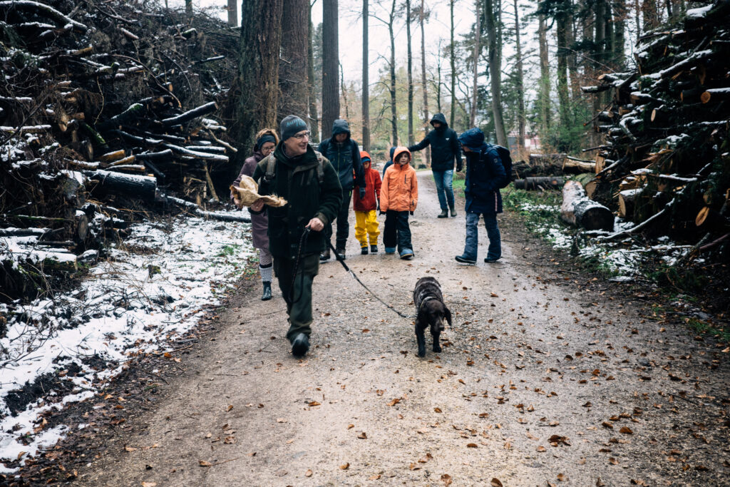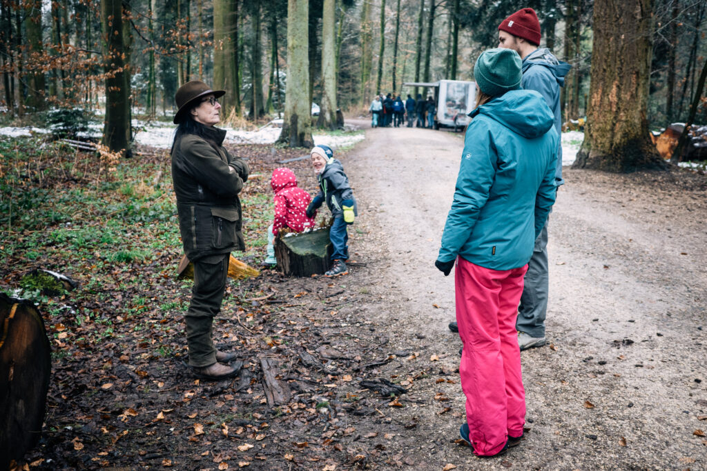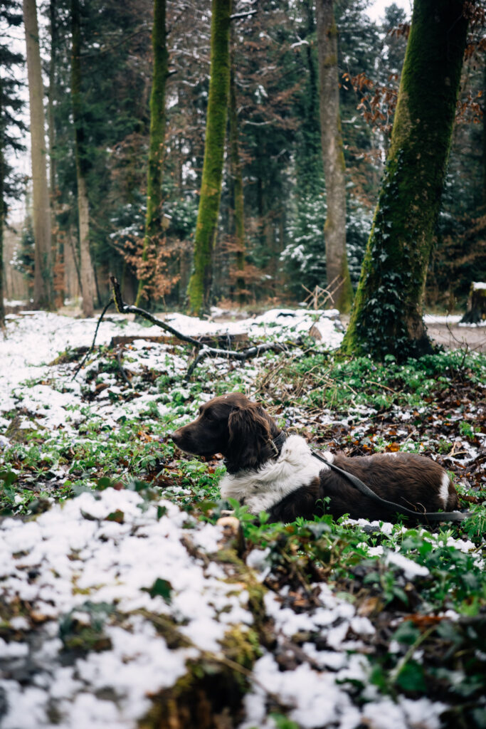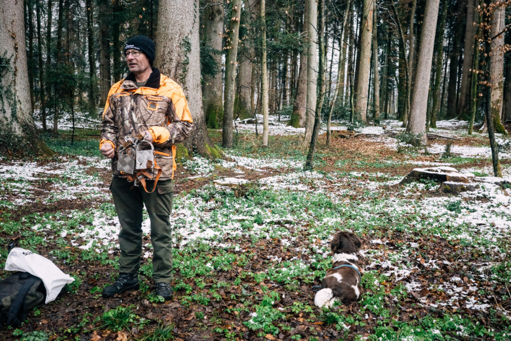 «Es gibt kein schlechtes Wetter, es gibt nur schlechte Kleidung!» mit diesen Worten begrüsste bei fast winterlichem Schneetreiben Daniel Rebsamen, Präsident der Jagdgesellschaft Unterentfelden und seine drei KollegInnen die 20-köpfige Teilnehmerschar. Mit dabei auch Aischa und Leika, die beiden Jagdhunde und Hauptakteure bei der «Schweissspursuche».