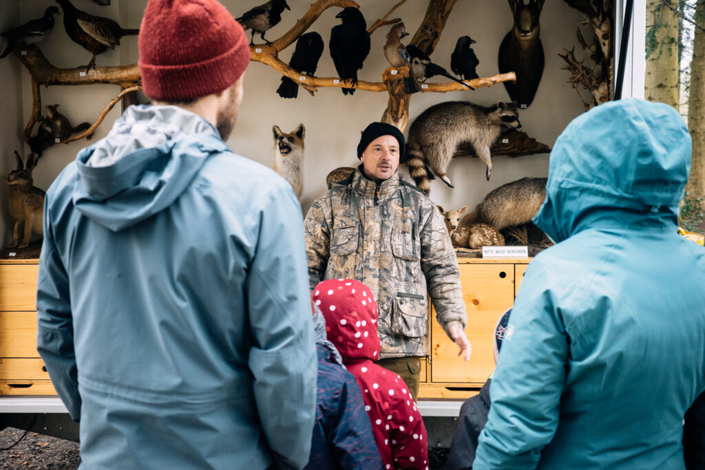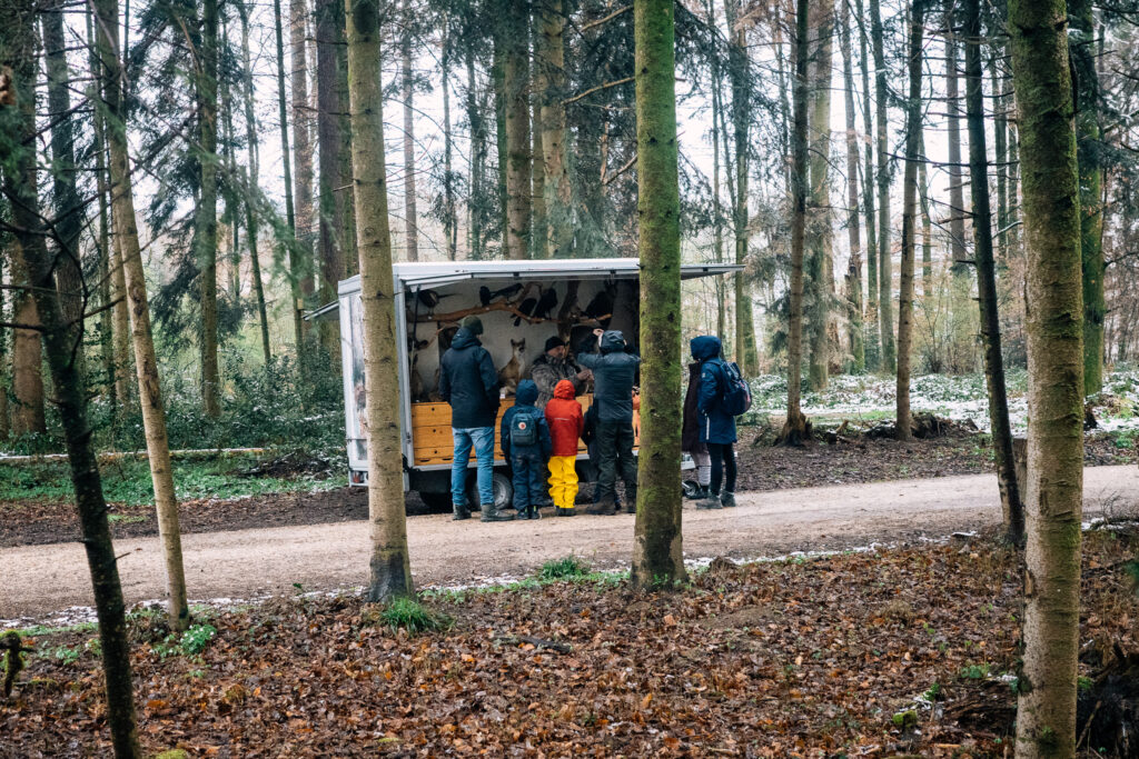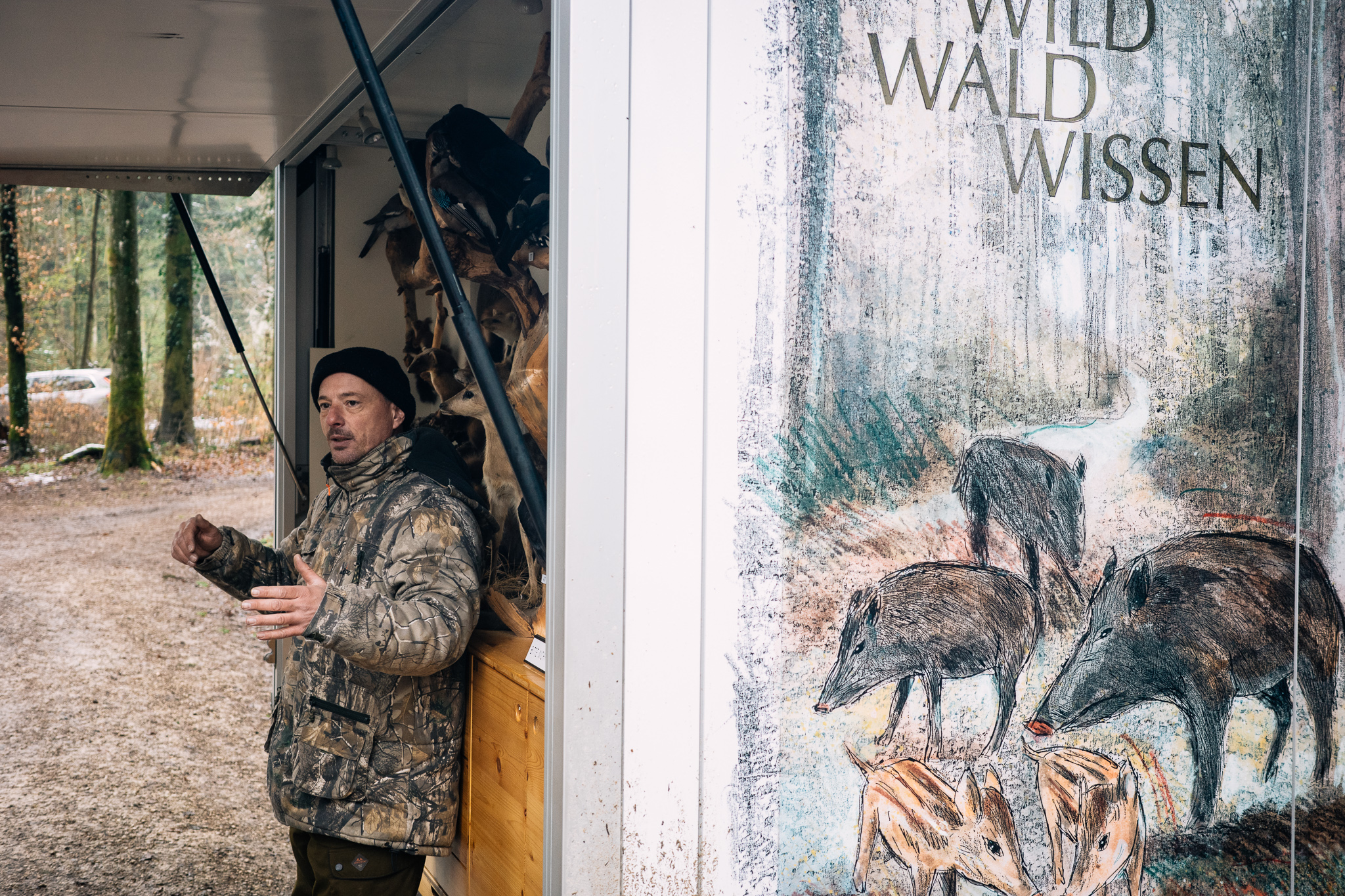 Erstaunlich: Trotz der vielen Menschen, die den Gönert von früh bis spät bevölkern wird hier auch gejagt. Gemäss kantonalen Vorgaben schiesst die Jagdgesellschaft z.B. jährlich 36 Rehe. Nicht zum Selbstzweck, sondern weil es sonst zu viele Rehe gäbe, die dann die jungen Bäume fressen. In dieser Funktion unterstützen die Jäger also auch den Förster. Die Aufgabe der Jagdgesellschaft umfasst aber deutlich mehr: Jäger beobachten den Gesundheitszustand der Tiere, sie führen Zählungen durch oder tragen Sorge, dass in unseren Wäldern unerwünschte Pflanzen, sogenannte Neophyten, nicht Überhand nehmen. Eine weitere wichtige Aufgabe ist der Einsatz ein Unfällen mit Wildtieren. In solchen Fällen kümmern sie sich um toten oder verletzten Tiere. Übrigens: das Nichmelden eines solchen Unfalls gilt als Fahrerflucht und wird bestraft.
