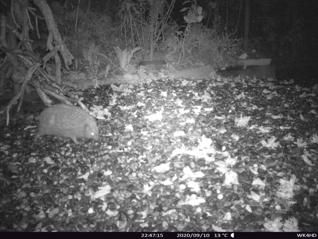 Im Zeitgeist der 80er-Jahre, geprägt von der Sorge um die zunehmende Umweltzerstörung, beginnt die Geschichte des Schriftstellers Franz Hohler. Sie beschreibt die Invasion von Zürich durch Wildtiere. 40 Jahre später erhalten Tiere und Pflanzen mehr Raum und Entwicklungsmöglichkeiten. Aktionen wie «Natur findet Stadt» in Aarau und der zunehmende Trend zu naturnahen Gärten sind Beispiele. So wie die Geschichte bei Franz Hohler endet, sieht es in Aarau und im Gönhard noch nicht aus. Auch Adler habe ich hier zumindest im Himmel noch keinen gesichtet. Wenn man sich in der Nachbarschaft umhört, gibt es aber immer wieder Erzählungen von Igeln, Füchsen, Dachsen und sogar Rehen, die neben den Katzen das grüne Gönhardquartier vor allem in der Nacht queren. Die Bilder einer Nachtsichtkamera eröffnen ein reges Treiben: von Katzen, über einen Fuchs bis hin zum Igel, einer kleinen Waldmaus und Eichelhäher ist eine grosse Vielfalt zu beobachten.