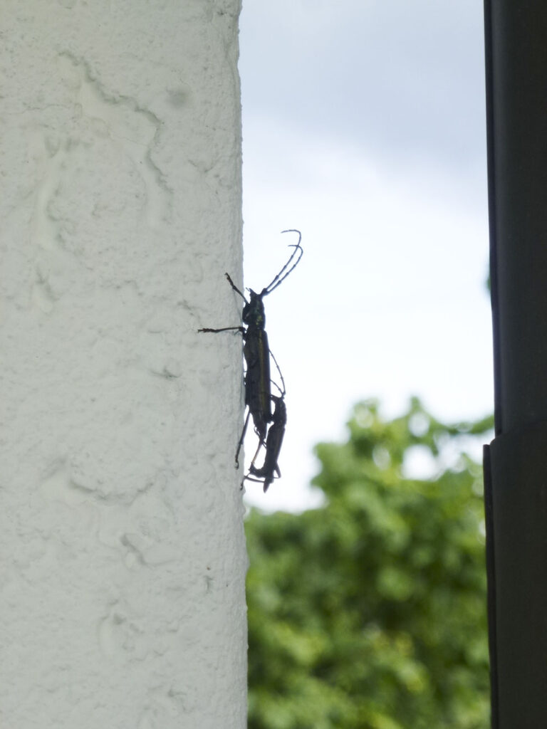 Gärten sind auch Wohnung und Unterschlupf für viele kleine Krabbeltiere. Mein persönlicher Favorit: der grün bläulich schimmernde Moschusbock. Ein Käfer, der über drei Zentimeter gross werden kann.